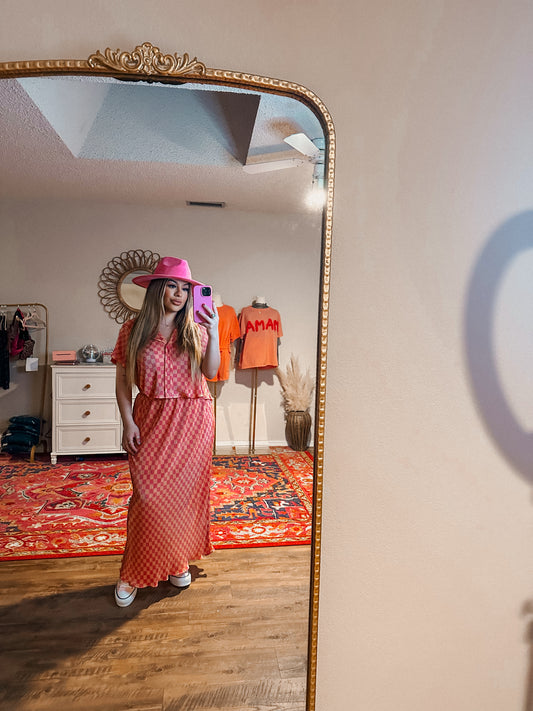 Sold outpeachy pink checkered skirt set