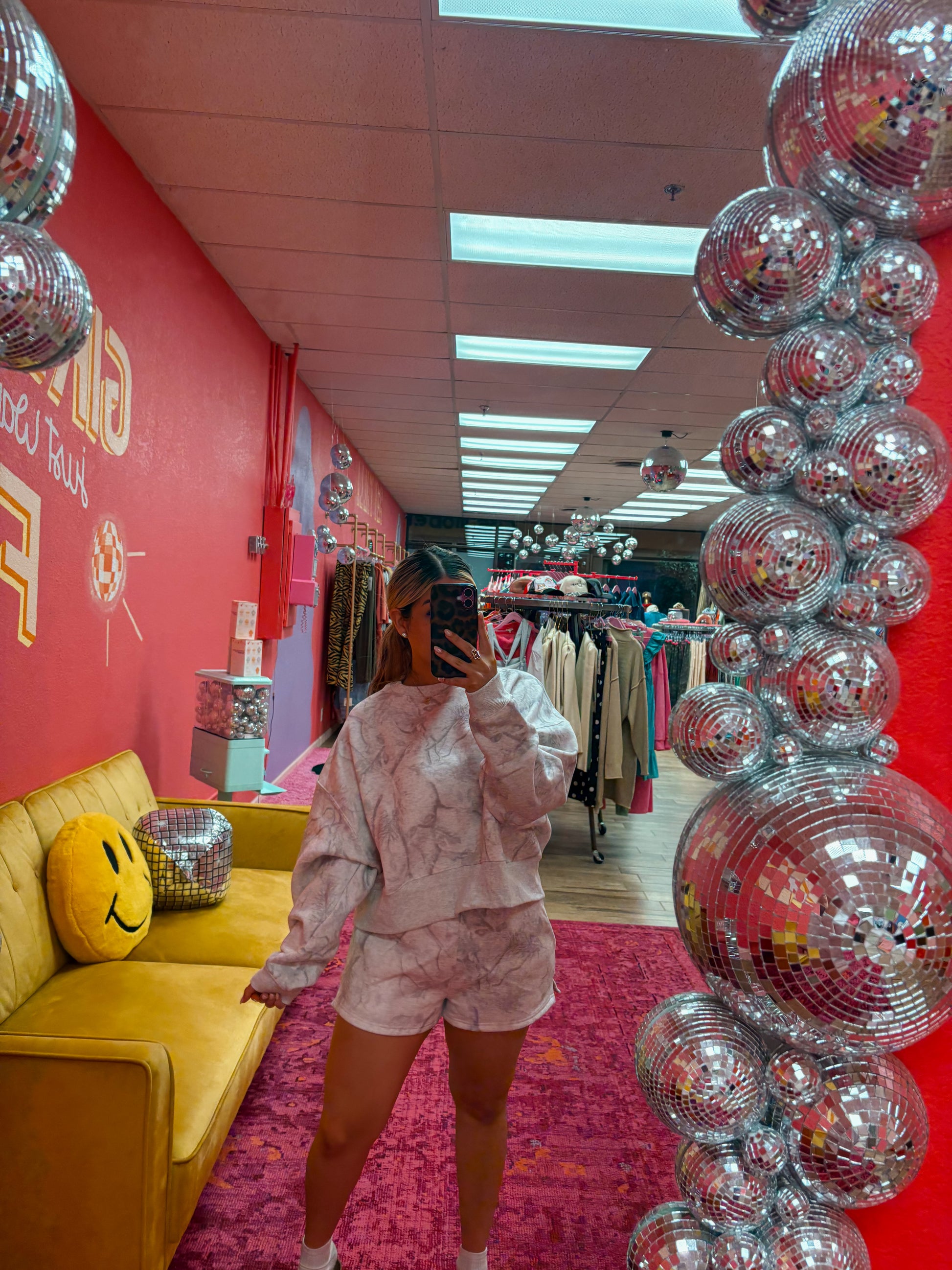 sweatshirt is oversized; shorts are TTS with some space!